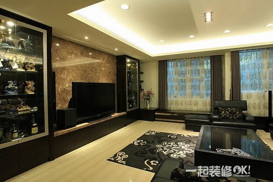 从大面对外窗外洒入的阳光,将悬垂于客厅天花板下的水晶吊灯折射出五光十色、晶莹剔透的亮丽质感,水晶吊灯线条的古典造型呼应玄关铜雕明镜的古典线条,与加大墙面延伸入玄关的黑云石大里石电视墙型塑沉稳的新古典场域。看过这些客厅瓷砖电视背景墙效果图之后,大家感觉怎么样呢?是不是很特别呢?如果想让你的家居生活也充满特别的趣味,大家可以尝试一下哦。