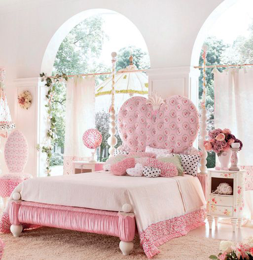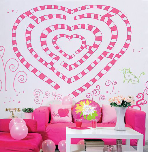 代表甜蜜的心形壁纸把低调的优雅呈现,整个空间中明暗的粉色交替出现,把轻松的韵律感带入室内。