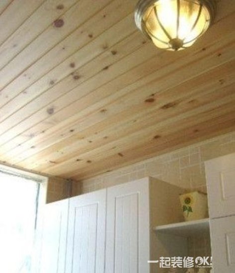 厨房顶我没封,省得太压抑了。而且封了也要算板子钱,嘿,一切从实用出发, 省了!吊顶用的是桑拿板,TB滴,才76元一平方,比当地的要省好多银子,还是双面免漆的,真透着樟子松的清香呢。