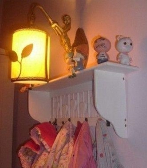 这个实木的挂衣架漂亮不?还有上面的美人鱼吊灯,以及那些淘公仔。