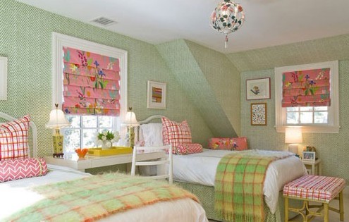 小小的阁楼,往往是家中营造温馨氛围的最佳场所之一。粉色的褶皱窗帘在室外阳光的透射下,显的分外迷人。合理运用粉红和粉绿的组合,有时会给居室带来意想不到的美妙效果,用绿色来冲淡粉色的甜腻感,调和出清新又不失可爱的家装风格。