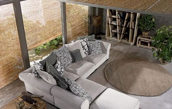 采用卷帘装饰的隔窗将室内与室外分割,高空间、大进深的客厅在装饰材料上以木材和竹制品居多,中式风格的这种表现让整个空间传统中透着现代,现代中糅合了古典气韵。