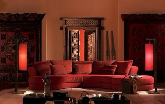 打造不同的居家美学,沙发色彩运用传统的中国红,洋洋大气不失风度,其背后还放置了一件明清式样的家具,留白的墙面上印有书画落款。因中式风格(简约时尚大气的新中式风格)的家具古板,缺少现代气息,因此只能在家居中点缀之用室内空间搭配。