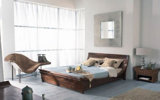 常见的中式床具是四柱帷幔的造型,床的顶部还有顶盖。而这款经过简化的中式床具更加富有现代感。床周围的圈椅和瓷器软装,在整个中式风格中也起着重要的装饰作用。