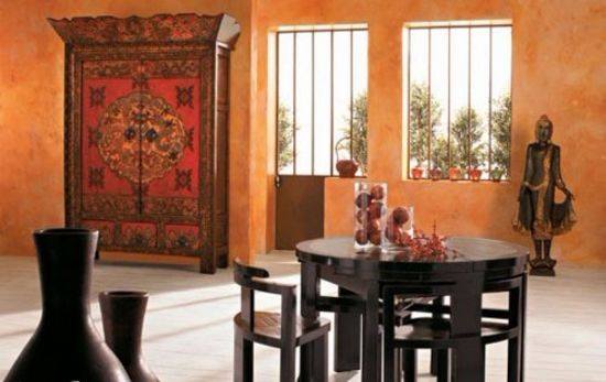 锈迹斑斑的红漆柜十分安逸闲适,是中国风格调里的难得风景。中国红加富丽金的组合,修饰出来的家居空间,充满了中式味道。