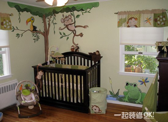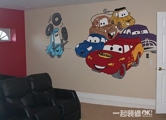用手绘背景墙把孩子带入童话中,亲情从这里得到无尽的体现。
