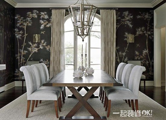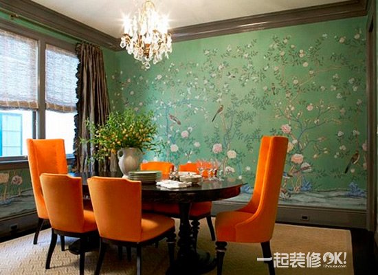 有了这幅手绘背景墙,这个饭厅高贵的同时有了充实,这才是真正的高贵。