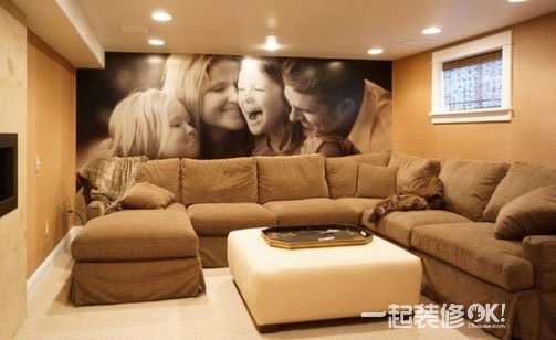 家庭照片总是会让人觉得温馨快乐,而把家庭照片放大到填满正面墙的程度原来会是这样的效果,这样的沙发背景墙也是很不错的选择,挑一张平日里和家人在一起的照片,让它成为客厅里的亮点就是如此简单哦。