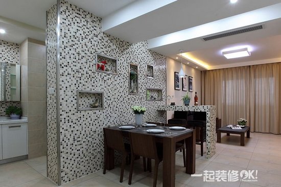 这个家居装修本身就是以马赛克为主,而采用马赛克来装饰餐厅的背景墙,使得整个空间充满了时尚感。