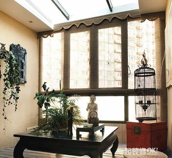 能带来阳光与好空气的窗边角落(装修如何利用好每一寸角落?看看这些),一定不能放过,既然是茶室,那就将古色古香进行到底。雅致的鼓腿茶几仍是首先,坐垫则选用了四季皆宜的蒲团,角落的红色古典收纳箱,既能收纳又能承载起这只别具韵味的鸟笼。茶几上摆放的一尊佛像,点缀中式风格的同时,体现出主人的信仰。最后,别忘了用造型优美的绿植作一点睛之笔室内空间搭配。