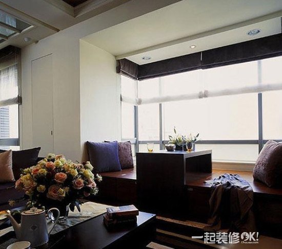 中式风格总给人一种气势磅礴的大家风范,飘窗区域用木制地台垫高,以简约的现代中式格调打造,光洁而宽敞,中间特制的长方形茶几,中间部分予以镂空设计,这样一来,双腿伸直就能伸展开,让茶室更为舒适。