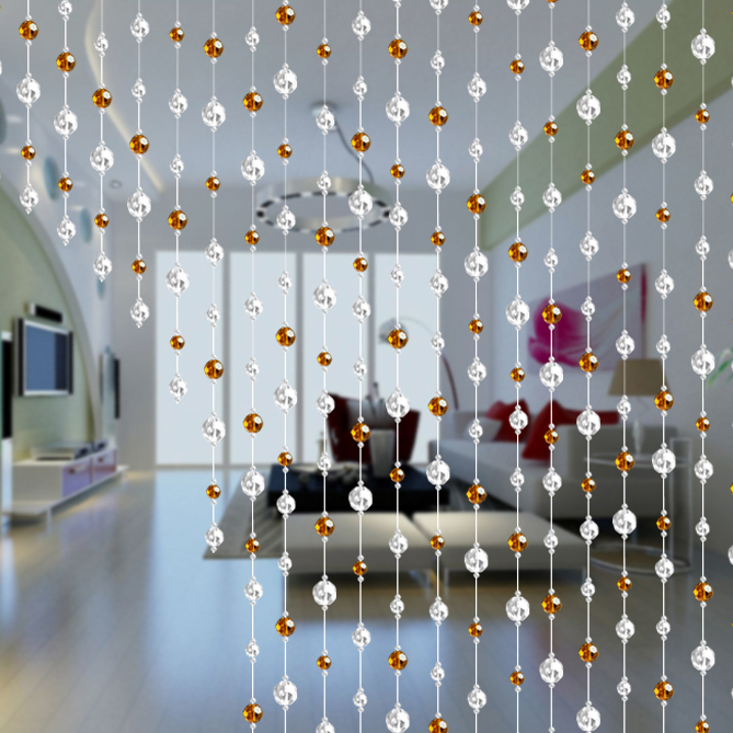 可以选择不同颜色搭配的珠子。这些可以去网上看一下实物照片或者挑选自己喜欢的。串起来的话要算好间隔和排列 最好有5厘米的间距。如果是1米的长度 间距5厘米 那么你就需要串20根珠帘。以此类推:)