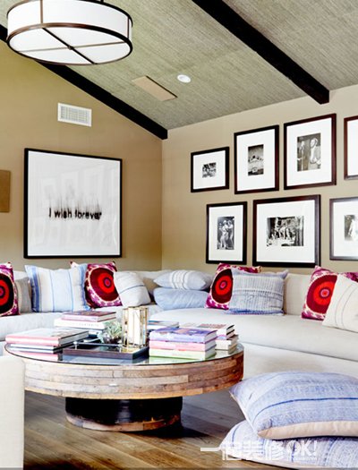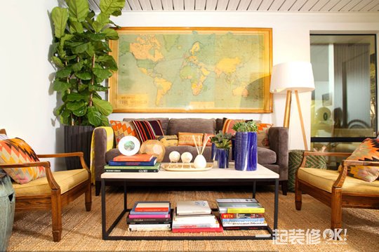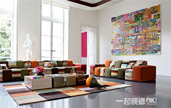 推荐理由:不论沙发、地毯还是墙面上的挂画,都是色彩斑斓的,这使得空间更为活泼。