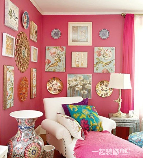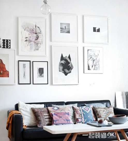 这个照片墙的设计在小编看来是最具个性的,只要准备一块做够大的白墙,将自己喜爱的照片或者艺术画一一贴上,不需要什么固定的顺序,只要随心张贴就能得到一面独具创意的照片墙。