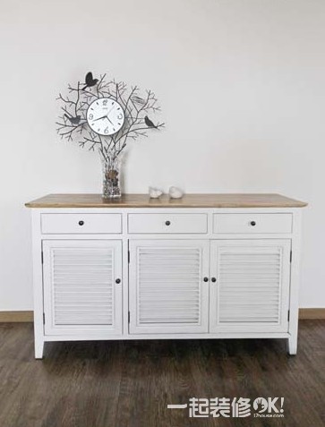 一个干净清爽的玄关柜,摆放一双慈爱对视的陶瓷鸟儿,用花瓶盛住一只枝桠伸展的挂钟,静默,让玄关但别有一番味道。