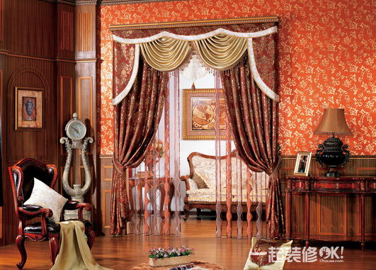 深红色的织锦缎窗帘是冬季窗帘的最佳选择之一,厚实紧密的材质保暖效果非常好,颜色也会给人温暖的感觉。