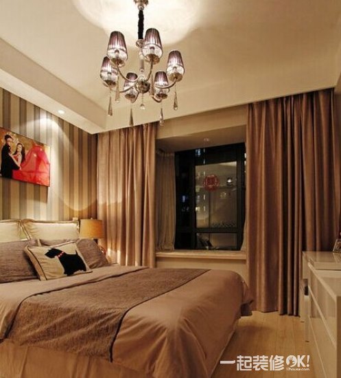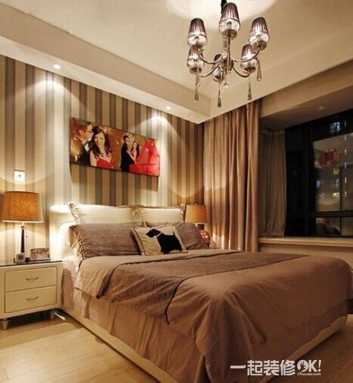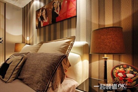 时尚家居装修 条纹壁纸搭配温馨卧室