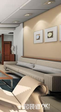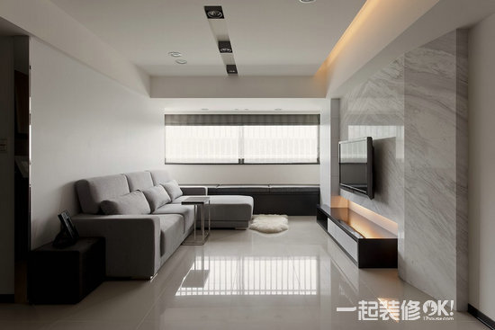 简约的客厅仅有一L型沙发定义客厅使用空间。