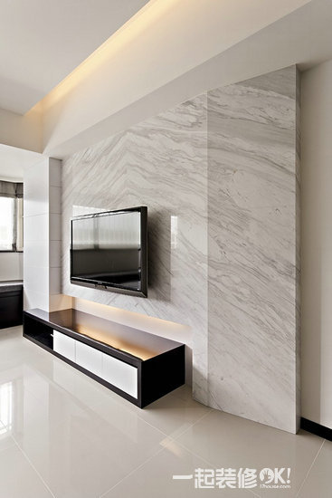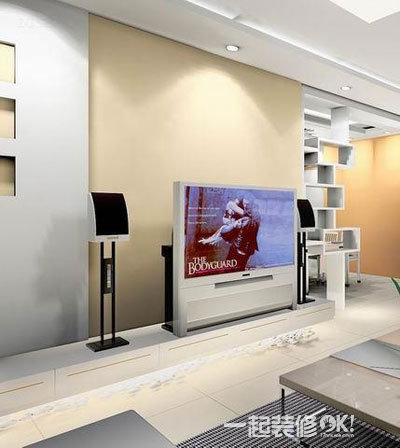电视背景墙的灯光布置,多以主要饰面的局部照明来处理,还应与该区域的顶面灯光协调考虑,灯壳尤其是灯泡都应尽量隐蔽为妥。