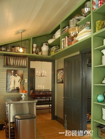 小编的话:从房型上看,这间厨房的整体格局给人以特别的映象,在拥有和一般厨房差不多的烹饪区域之外,把墙面空间打造成具有强大收纳效果的储物柜,能够在这里收纳下不少零碎的厨房用具哦。