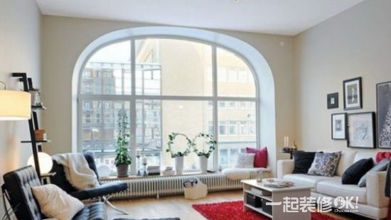 小编的话:少见的大面拱形玻璃窗,还能当飘窗使用,室外的光线自然的投射进来,客厅墙上随意挂着几幅壁画照片,也许房间主人是个太迷恋窗外风景的人吧,总会站在窗前欣赏着这个世界。