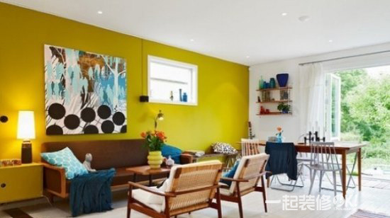 小编的话:亮黄色墙面与白色长条地板相结合,推开客厅旁的门出去便是一大片的绿,空间瞬间向外延伸,这样的客厅设计适合居住在一楼的业主们,客厅空间也会随之变的更具休闲感。