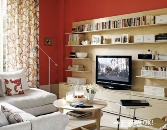 小编的话:红色和米色,一浓烈一淡雅。这两种极端的色彩却能在一个空间里相处融洽,充足的光线洒进来,使客厅空间充满了活跃的气氛。