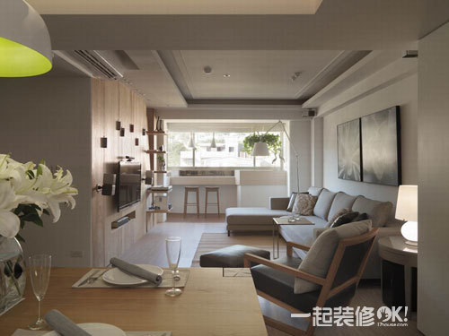 编辑点评:将原本客厅跟餐厅的隔间墙打掉,把客餐厅\"拉成方正\",选用较轻的颜色作为主色系,维持开阔敞亮的视觉感。无走道的设计会让每个区域都被使用到,比原始的客餐厅的格局还多了四坪空间。