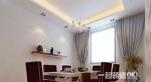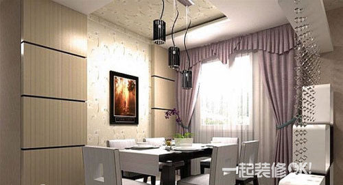 这个餐厅散发着高雅的气质,紫色的窗帘更是给这个气质增加了浓重的一笔。而餐厅背景墙的布置,同样呈现了这一风格,在两个面纹理的墙面中摆放上一幅意境深远的装饰画,更是提升空间的味道。