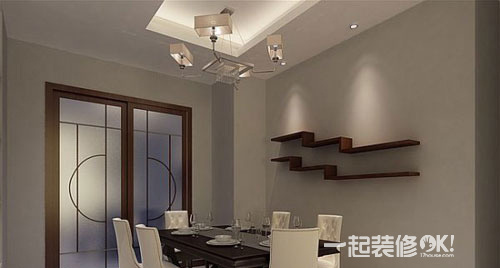 这个餐厅布置给人一种干净清爽的感觉,只在墙面上安装一个隔板,摆上装饰物,这种简单的设计,反而给人一种宁静清快之感。