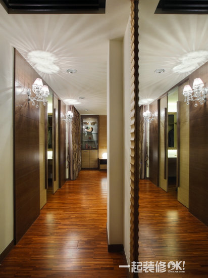 室内廊道对称的壁灯是从公共区域进入私密空间的完美隐喻。