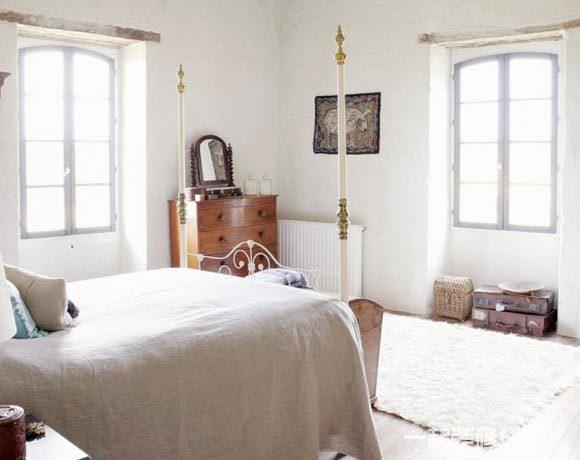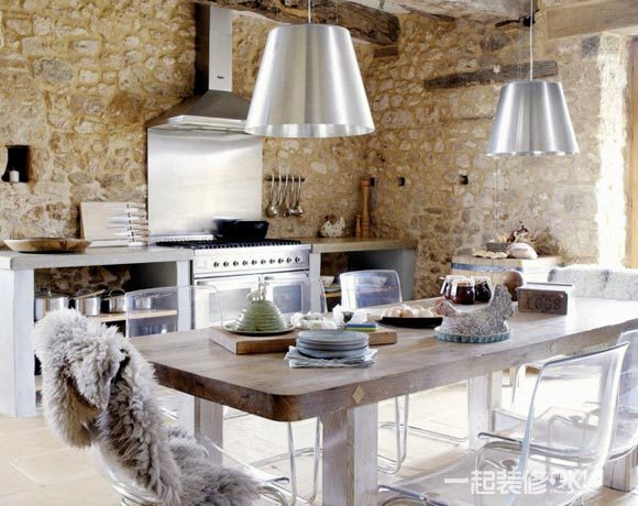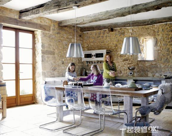乡村传统由周围有一系列柱子支撑形成围廊,给居住者提供了360度的全景视野,在这样的原始的风格中,放一些现代家具(现代家具衣柜的保养技巧 开放式衣柜 ),比如玻璃透明的桌椅,就非常容易有一种冲突的视觉风格。这就是法国乡间别墅室内空间搭配。