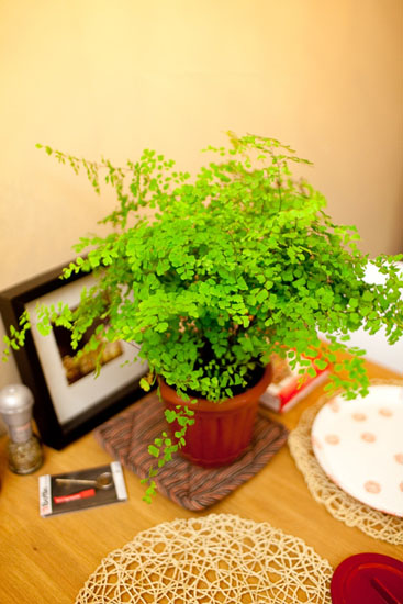 铁线蕨属多年生草本植物,性喜温暖湿润和半阴环境,铁线蕨不仅具有其独特的观赏价值,而且放在室内可以吸收甲醛、净化空气,同时具有特殊的药用价值,有通经、活血、防跌打损伤的功效室内空间搭配。