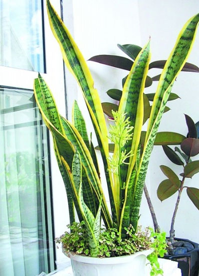 虎尾兰可吸收室内部分有害气体,并能有效地清除二氧化硫、氯、乙醚、乙烯、一氧化碳、过氧化氮等有害物,适用于家庭,办公环境的装饰,不仅美化环境,还能吸收有害气体。