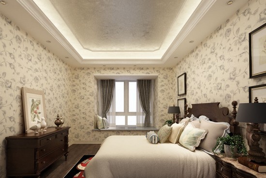 次卧:次卧室如果主要由老人居住就应该选择一些较能使人安静和沉稳的的墙纸,也可根据老人的喜好选带些素花的墙纸。