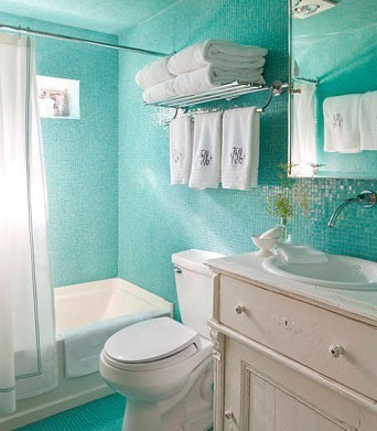 淡蓝色的卫浴间,本身就在感观上就很觉得清爽。搭配最普通的白色瓷砖演绎出空间的几何感和节奏的变化,白色的面盆和浴室家具,不仅使空间视野开阔,而且愈加清雅洁净,怡心爽神。