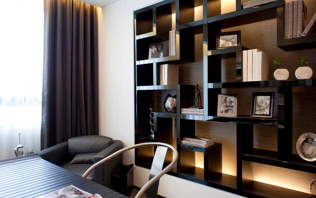 现代书房装修一般要保持一定的独立性,书房的布置往往追求安静,雅致。台灯是书房内必不可少的配饰,可选择简单的带灯罩样式,保证足够的照明并起到一定的装饰性作用。灯罩样式的台灯在很多程度上减轻了光线的凉度,这样有有助于防止在长时间的阅读下,刺眼的灯光对眼睛造成伤害 -