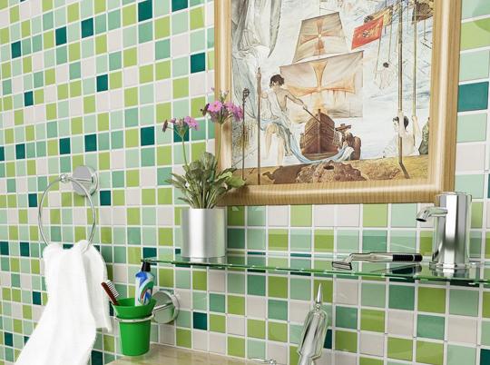 马赛克的运用不仅仅因为其较好的耐磨、防水功能,还因为能打造出各种各样的造型,填补一些尴尬的地方。因为马赛克的体积比较小,能很好的铺设到一些弧度上的点,且可以用色彩不同的马赛克设计成各种图案,使其摆脱了传统的束缚,变得更加时尚、精致。 -