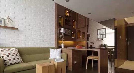 再好的一份感情也需要用心经营,再好的一颗戒指也需要用钻石修饰,再精美的小户型房子也需要独到的室内装修设计。窗开在厨房而不是客厅,那干脆不要隔间让客厅厨房能同时分享光线,而且开放式的厨房也让空间感大增。壁架随著墙面延伸变成餐桌,摆上略高的酒柜后,不但可以作为中岛也能是吧台,并且划出客厅和厨房间的界线。酒柜半透明的门板让储存空间不会太沉重,也避免空间显得杂乱。不一定要量身定做,拿酒柜当吧台收不但纳空间有了,要喝一杯也能拿得很顺手。 是不是很惬意的生活呢? -