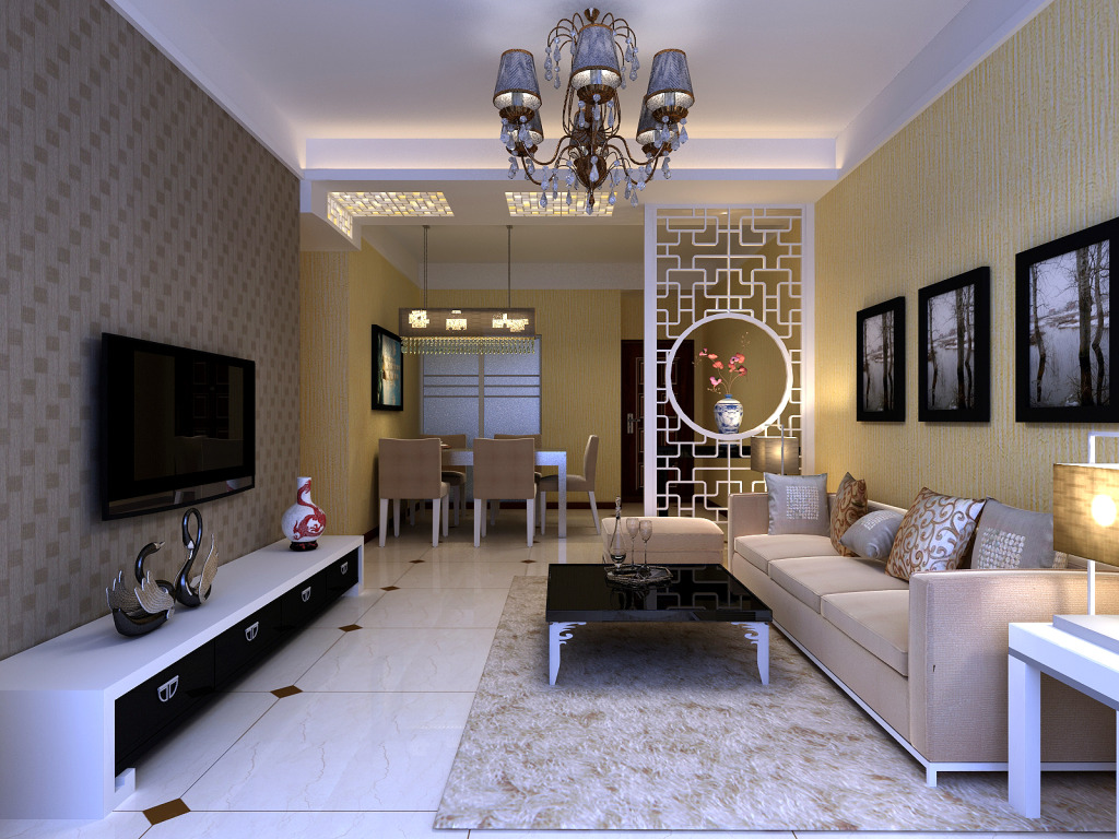 案例由于承重墙较多,在结构上没有太多改动,亮点是以吧台的设计分割了餐厅和客厅,同时也增加了空间的互动。进门鞋柜和电视背景墙进行整体设计,将阳台垫高作为一个休闲区,以仿文化石的深色墙纸点缀,形成舒适的家庭休闲氛围 -