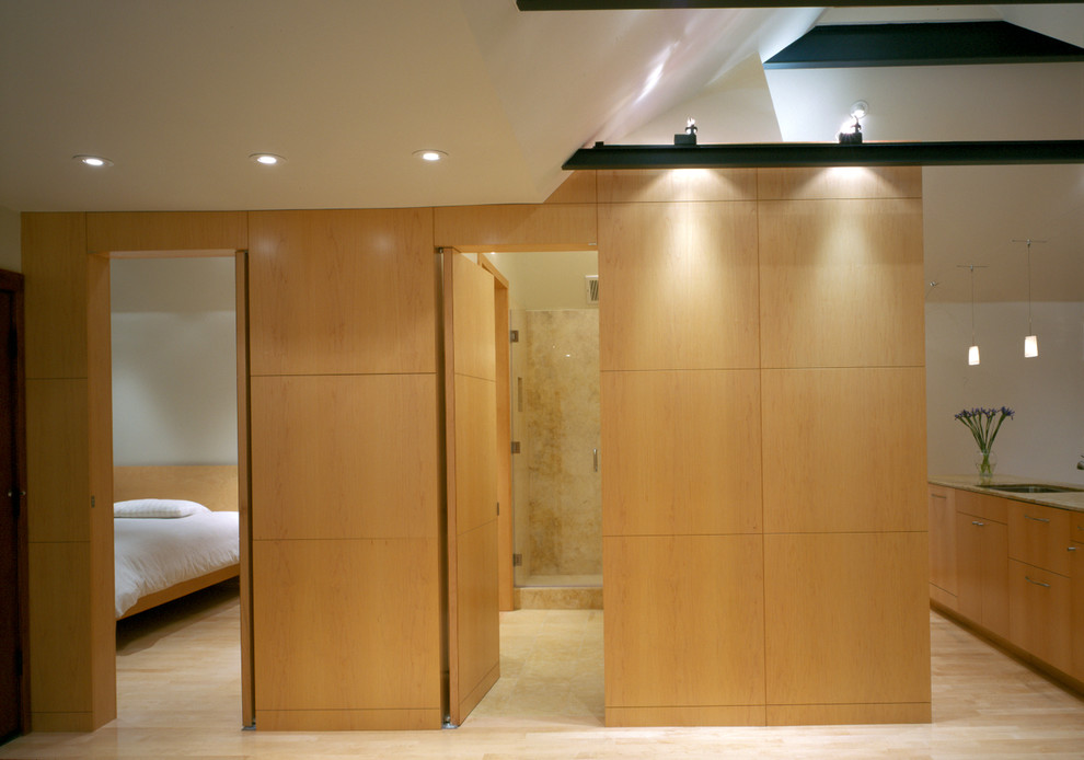 优秀的室内装修设计会提高一个单身型男公寓的档次,更能体现一个人的品味。96平方的不规则阁楼,带露台的公寓。拱形天窗,多层的小楼梯装饰和可见的木梁,设计上很精美。倾斜的墙壁和天花板涂以白色。高挑的天花板,漂亮的天窗,充足的自然光线使宽敞的客厅空间觉得非常舒畅。一个玻璃推拉门(落地窗)直接到达阳台,城市的美景可尽收眼底。 -