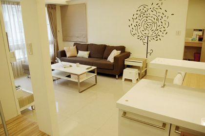 在客厅,白色的墙壁,光线十分充足。以利落的线条的家具设计,表现属于当代的简约风范。随处可见的小盆栽装饰,为原木空间带来生机,整体空间不仅简洁、温馨同时也具有延续性。 -