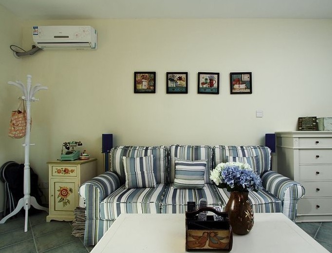 简约美式,倡导“简洁独特”的品味,纯洁的白色和淡雅的蓝色,看似古旧的家具,正在勾勒居室此处的语调。但是,原本看似普通的居室一角,加上复古的画框以及小物件,开始变得与众不同。 -