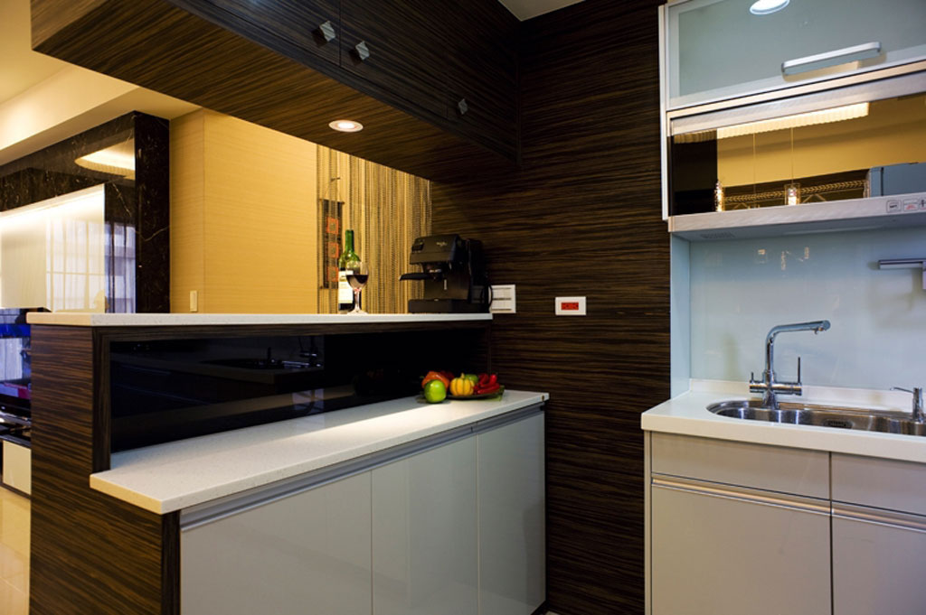优秀的室内装修设计会提高一个单身型男公寓的档次,更能体现一个人的品味。这套公寓面积不大,总共60多平米,对于三口之家而言,恰好够用。入门处没有玄关,厨房就在入门旁侧的尽头,因为平时屋主很少做饭,就索性拆除了厨房的隔墙,做成餐厨合一的全开放式格局。 -