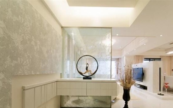 玄关区域运用复压夹纱玻璃与石材铺排出与客厅界定的介面,黑色大理石作地材跳色处理,将精緻不凡的优雅气度展现开来。今天小编就给大家介绍一下家庭装修设计之别墅装修设计。 -