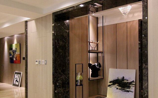 一栋时尚风格公寓的格调在于它的室内装修设计,常言道“人靠衣装,佛靠金装”,那么装修一所公寓就是给它披上华丽的外衣。将穿鞋椅与设计结合,凹槽处茶镜的贴覆倒影上灰镜鞋柜门片,横向交织放大视觉感受。 -