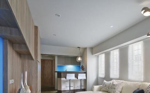 优秀的室内装修设计会提高一个单身型男公寓的档次,更能体现一个人的品味。展开封闭空间的框架,设计师首先打破格局限制,保有原始木纹之美的电视墙,一路贯穿客厅、餐厨和书房,形成既开放又独立型态,也有利于小朋友的安全管理,从任何角度都能注意到孩童动静。 -