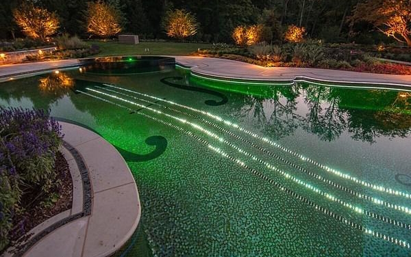 今天将为大家推荐这个发生在自家后花园的魅力小提琴游泳池。来自美国新泽西的Cipriano Landscape Design将这个管弦乐畅想变为现实,在自家后花园建立了这座巨大的小提琴游泳池,除了外观兼具小提琴的各种零部件以外,还在选材上颇为投入,小提琴的琴弦都采用了LED电子灯,将小提琴的琴弦勾勒出来。泳池底部安装的有多功能播放器,供游泳玩耍的人们不同的需求。泳池的保温性能也非常好,可供你在凉爽的季节来个温暖的SPA。 -