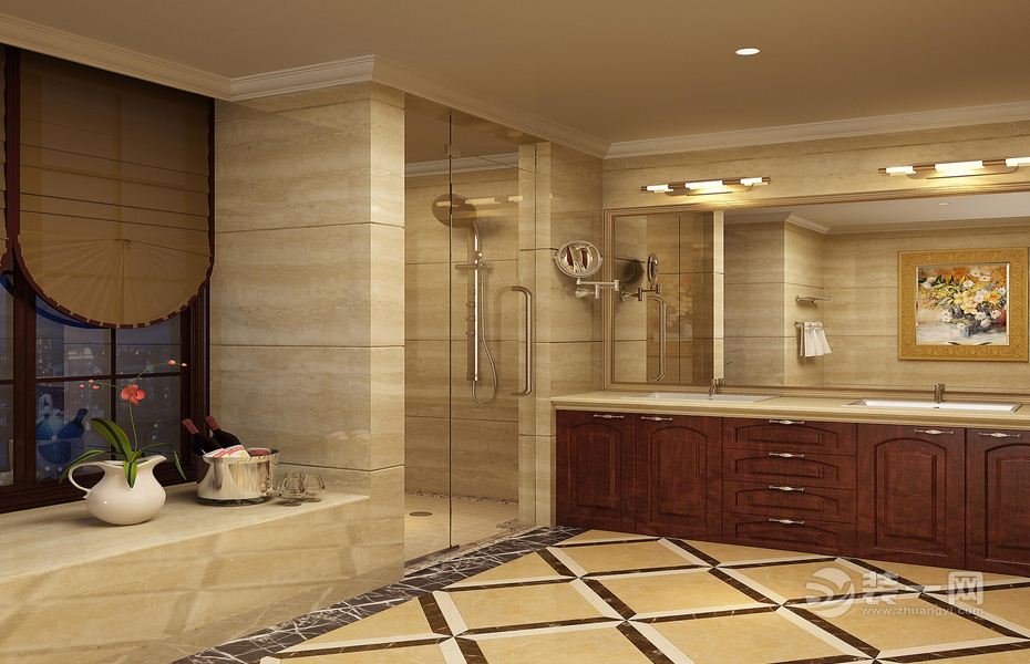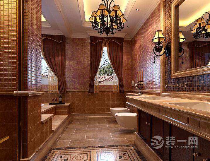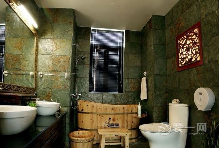 古香古色的木制家具,打造出精美绝伦的高雅卫浴间。