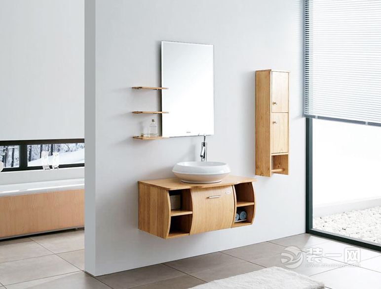 此款卫浴间装修效果图大气,简洁。如果不是窗户面积大的缘故,根本达不到这样的装修效果。